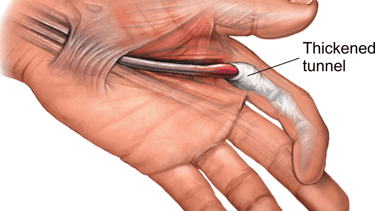 Trigger finger makes a finger get stuck in a bent position. It may straighten suddenly with a snap. The fingers most often affected are the ring finger and the thumb, but the condition can affect any finger.